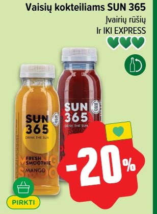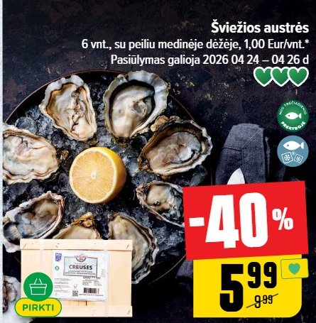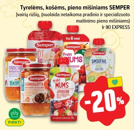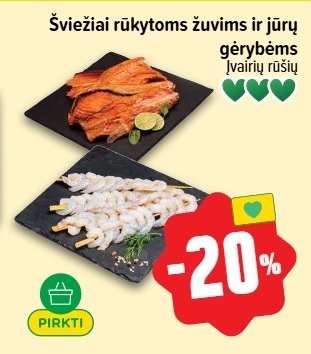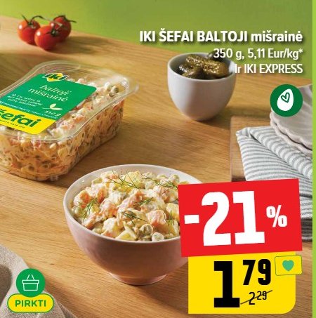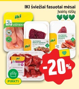 Šiame Iki akcijų leidinyje rasite 404 produktų su nuolaidomis. Leidinys galioja nuo 2026-04-20 iki 2026-04-26. Akcijos apima: bakalėja, mėsa ir mėsos gaminiai, vaisiai ir daržovės, namų ūkio prekės, pieno gaminiai ir kiaušiniai, prekės gyvūnams, konditerija, gėrimai, kava ir arbata, šaldytas maistas, saldumynai, žuvis ir žuvies produktai, kosmetika ir higiena, kulinarija, augalai ir jų priežiūros prekės, konservuotas maistas, kūdikių ir vaikų prekės, buitinė chemija.