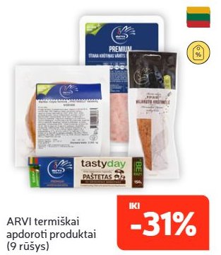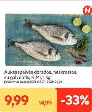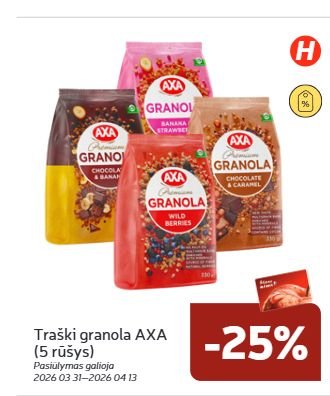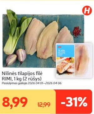 Šiame Rimi akcijų leidinyje rasite 228 produktų su nuolaidomis. Leidinys galioja nuo 2026-03-31 iki 2026-04-06. Akcijos apima: konditerija, namų ūkio prekės, mėsa ir mėsos gaminiai, pieno gaminiai ir kiaušiniai, vaisiai ir daržovės, saldumynai, kulinarija, bakalėja, žuvis ir žuvies produktai, kosmetika ir higiena, šaldytas maistas, gėrimai, kūdikių ir vaikų prekės, kava ir arbata, konservuotas maistas, prekės gyvūnams, augalai ir jų priežiūros prekės.