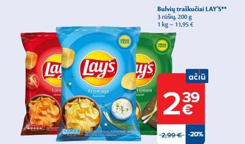 25% nuolaida Lay's bulvių traškučiams 200 g