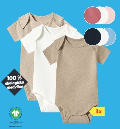 4,99€ už 3 vnt.; 1 vnt. = 1,67€; Ekologiška medvilnė; 62/68-86/92