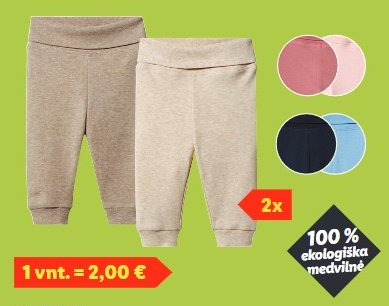 3,99€ už 2 vnt.; 1 vnt. = 2,00€; Ekologiška medvilnė; 62/68-86/92