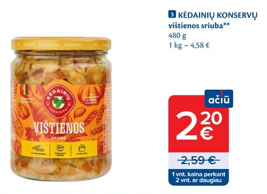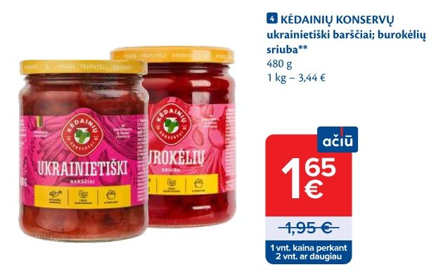 Акции konservai из Maxima, Lidl, Iki, Norfa, Rimi и других магазинов. Сейчас доступны 18 активных акций в категории konservai. gudrusis.lt сортирует предложения по размеру скидки, чтобы вы быстро нашли лучшую цену.